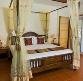 - Использование стандартного постельного белья в сочетании с занавесками с балдахином, которые просто драпируются или свисают с верха столбиков кровати, и могут иметь или не иметь подходящую прозрачную верхнюю часть балдахина.