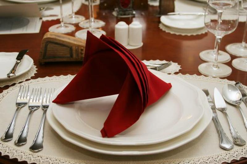 Сложите салфетку, чтобы получить небольшую, но удобную подставку для посуды. Это помогает освободить место на небольших круглых столах.