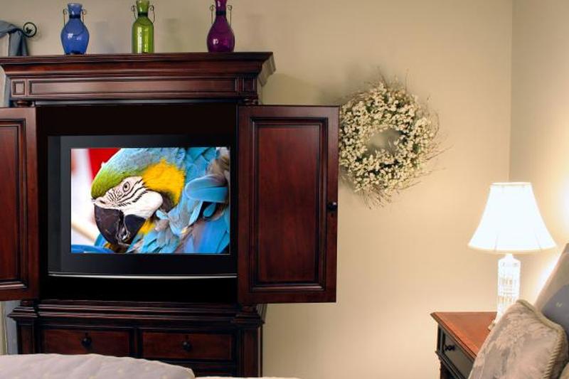 В Wayfair есть ТВ-шкаф Kingstown Trafalgar. Шкаф оформлен в британском колониальном стиле и предлагает место для телевизора и другого электронного оборудования. Клиенты Wayfair дают хорошие отзывы об этом шкафу для телевизора на своем веб-сайте, отмечая как размер, так и внешний вид в закрытом состоянии.