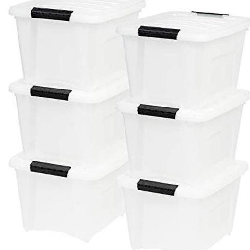 Что касается простоты хранения, долговечности и цены, обратите внимание на многоцелевой контейнер IRIS USA. Эти бункеры бывают разных размеров, но я считаю, что прозрачные коробки емкостью 19 квартов очень удобны. Поскольку они прозрачны, вам не нужно их маркировать, если вы этого не хотите. Они также легко складываются и остаются заблокированными с помощью системы крышки с быстрой защелкой. Они отлично подходят для хранения вещей в доме или для подготовки к походу.