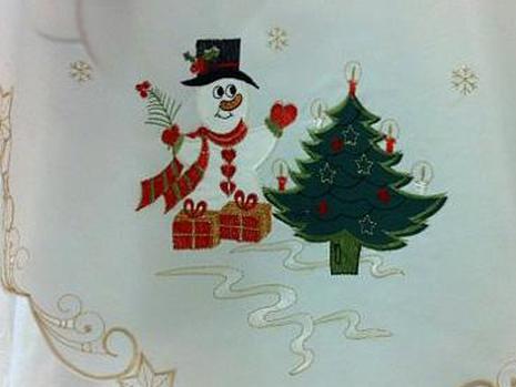 Вышитая скатерть-снеговик может подарить вам детский азарт со взрослым чутьем. Скатерть такого типа может стать фоном для очень официального обеда или неформальной семейной встречи. Украшения вашего стола и фарфор определяют, какой обед вы устроите.