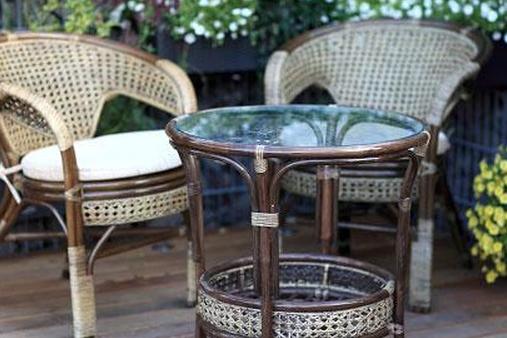 Внутренний дворик в стиле кантри или хижины просто ждет, чтобы плетеный плетеный стол бистро завершил внешний вид. Домашний внутренний дворик на берегу озера прекрасно подходит для плетеного столика в бистро. Добавьте пару других плетеных элементов, чтобы завершить декор патио.
