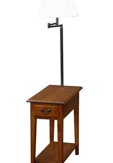 Если вы ищете небольшой профиль, небольшой стол и лампу, рассмотрите торшер Legacy Home Broadmore, доступный на Wayfair.com. Это высокий полноразмерный торшер с небольшим стеклянным столиком, окружающим фонарный столб примерно на середине высоты. Сама лампа имеет удлинитель, который позволяет расположить ее ближе или дальше от пользователя, поэтому тот факт, что стол окружает стойку и не позволяет ей приблизиться к стулу, не является проблемой.
