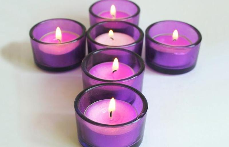 - Вы можете использовать пять фиолетовых свечей и одну розовую / розовую свечу.