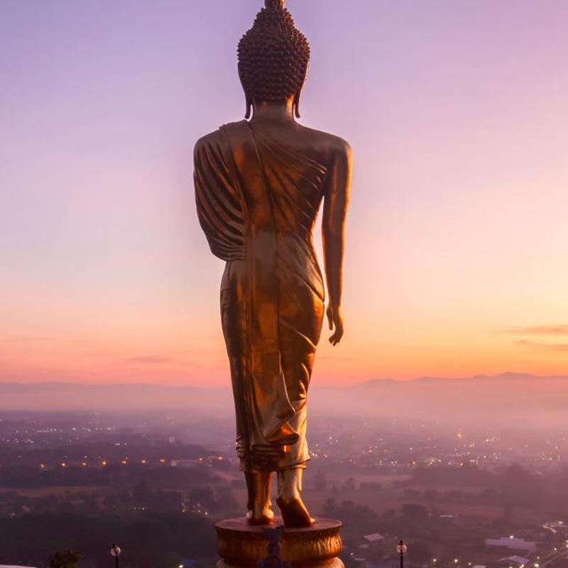 Эта дань статуи — Золотой Будда . Он расположен в провинции Нан, Таиланд, где украшает храм Као Ной. Это очень потрясающее и впечатляющее посвящение Будде.
