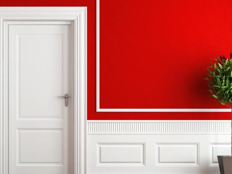 Если вы покрасили стены в яркий цвет и не хотите, чтобы на фоне них был резкий белый цвет, рассмотрите возможность использования мягкого цвета для обшивки стен, например, золотого. Этот насыщенный теплый цвет смягчает яркий красный цвет, делая всю комнату более привлекательной.