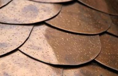 - Медная черепица: медная черепица может быть либо сплошной медью, либо медью, связанной с битумной черепицей. Черепица, связанная медью, позволяет домовладельцу иметь внешний вид сплошной медной крыши за небольшую часть стоимости.