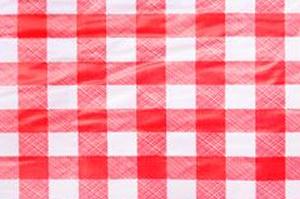 Винил — разумный материал для изготовления скатертей, поскольку он устойчив к разрушающим пятнам от пролитой пищи и напитков. Он также может пригодиться, особенно для мероприятий на свежем воздухе, таких как барбекю и пикники. Семьи с маленькими детьми также могут предпочесть винил ткани, в основном потому, что вытирать разливы — очень простая задача.