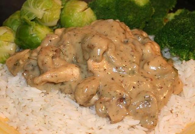 Сливочная запеченная курица с грибным соусом
