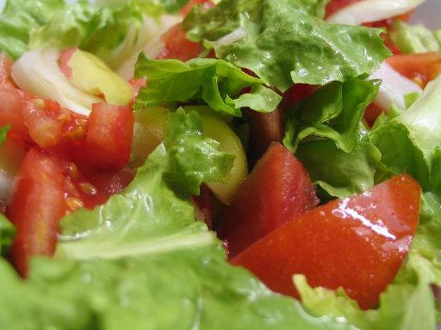 - 1 головку салата ромэн нарезать квадратами по 2,5 см, промыть и высушить.