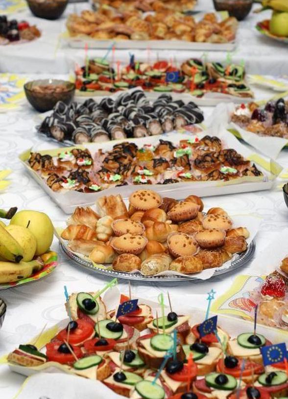 В буфете с закусками, чем меньше, тем лучше. Подумайте о миниатюрных гамбургерах, коктейльных франках, сэндвичах с курицей размером с пинту и мини-тако.