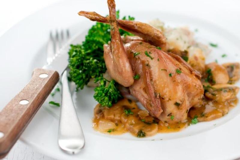 Что касается хорошего птичьего курса, вы можете выбрать индейку, гуся, куропатку или, что мне больше всего нравится на рождественский ужин, перепелов.