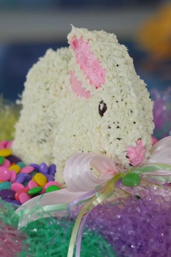Сделайте кролика в форме сковороды и поверните заднюю часть к стене, чтобы никто не заметил, что там только половина кролика. Используйте глазурь из сливочного крема, чтобы мех кролика стал пушистым.