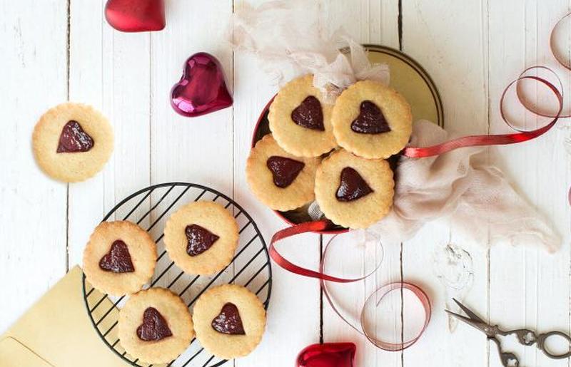 - Печенье Linzer : Традиционно это печенье-сэндвич с малиновым вареньем в середине и небольшим вырезом на верхнем печенье. Подумайте о том, чтобы сделать их в форме сердца и / или с окном в форме сердца.