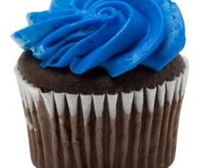 - Заморозьте кекс голубой глазурью и добавьте топперы для кексов, например пластиковые медальоны или кольца, с изображением Cookie Monster.