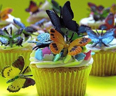 Для детской вечеринки в саду из игрушечных бабочек можно сделать забавные украшения для капкейков. Пластиковые праздничные кольца часто бывают в виде бабочек, и кольцо можно легко вставить в глазурь кекса в качестве последнего штриха. Конфеты также популярны среди детей и добавят красок и веселья к дизайну кексов.