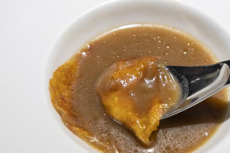 - Поместите сверток в большую кастрюлю с мясом черепахи и куриным бульоном.