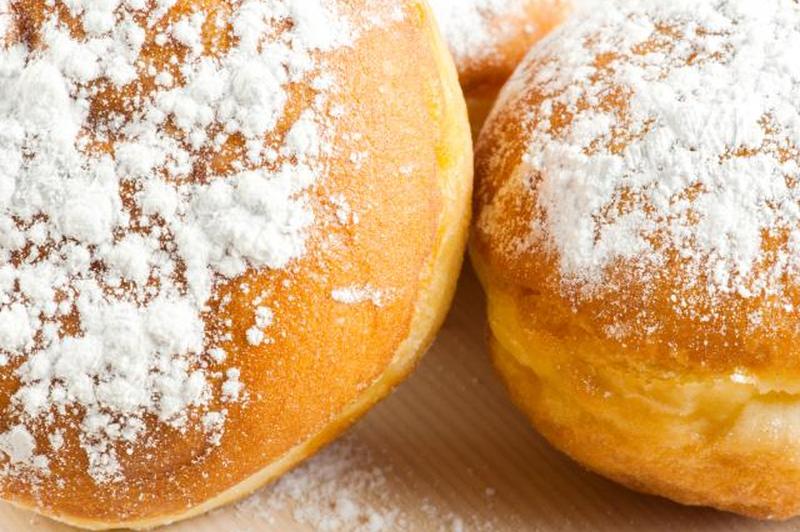 Рецепты варенья из ревеня придает этим пончикам восхитительную терпкость. В конце посыпьте корицей сахаром.