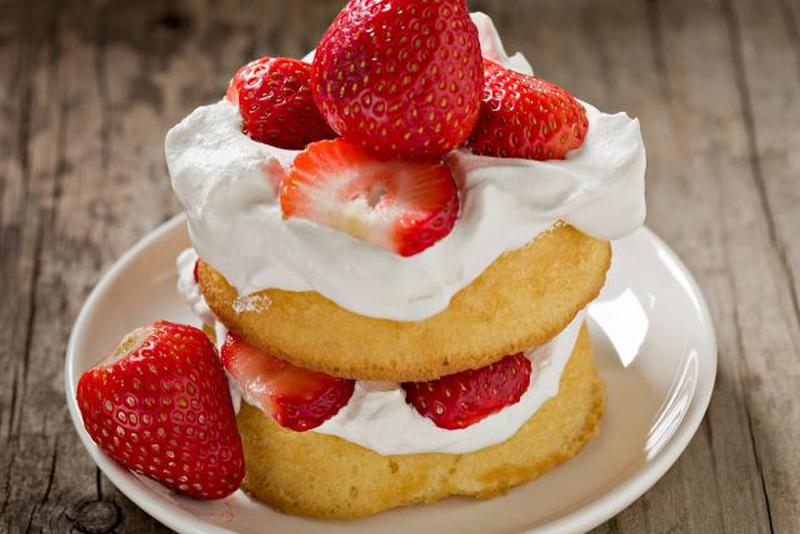 Для сборки положите по одному бисквиту на порцию в миску или тарелку. Добавьте небольшую ложку взбитых сливок. Выложите сверху половину клубники. Сверху выложите второй бисквит, ложку взбитых сливок и оставшуюся клубнику.