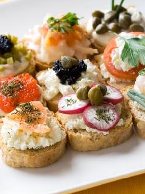 Эти небольшие закуски часто подаются на коктейльных вечеринках, и зачастую они очень вкусны. Традиционные канапе имеют основу из черствого белого хлеба, который поджаривали или поджаривали. Следующий слой традиционного канапе — это мягкий ароматный спред, например, сливочное масло или сливочный сыр с травами. Следующий слой, как правило, протирается и накатывается через кондитерский мешок в декоративной манере. Наконец, канапе украшают чем-нибудь красивым и декоративным, например, перцем перца или икрой.