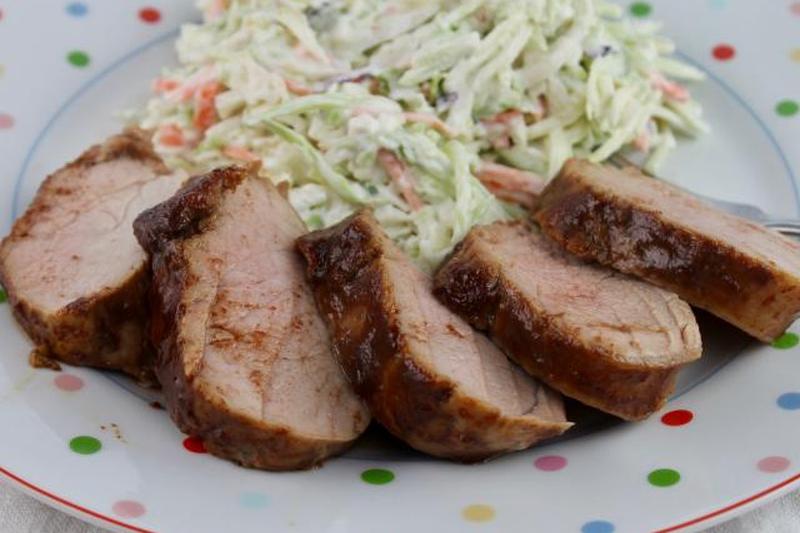 Когда температура свинины достигнет температуры 145 ° F, достаньте ее из духовки. Выложите ложкой оставшийся маринад. Дайте мясу постоять 5 минут, затем нарежьте его и подавайте. Подавать с любимым салатом из капусты .