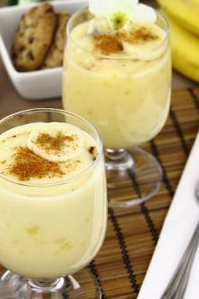 - Добавьте банановый ликер и постоянно взбивайте на среднем или медленном огне в течение трех-четырех минут, пока пудинг не станет красивым и густым.