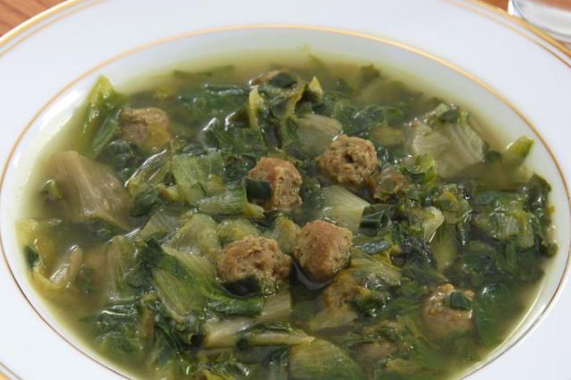 - Добавьте тефтели и эскарол. Варить, периодически помешивая, от 8 до 10 минут до готовности фрикаделек.