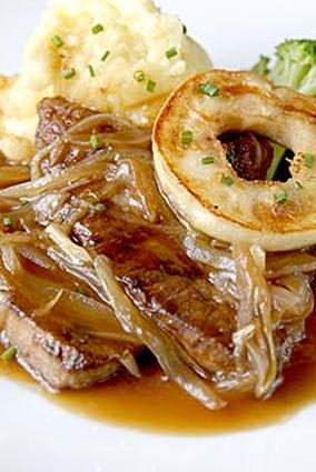 - 2 фунта телячьей печени, нарезанной тонкими кусочками