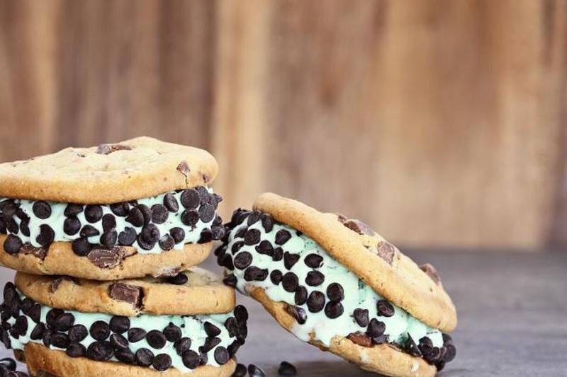 Гигантские тройные сэндвичи с шоколадной крошкой и мятой с мороженым
