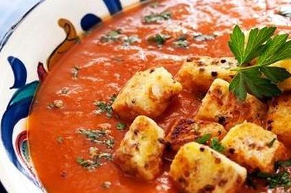 Томатный суп обычно подают с жареным сыром, и не зря — эти два продукта хорошо дополняют друг друга. Однако, если вы не любите сырные бутерброды на гриле, попробуйте подавать суп с: