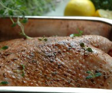 - Посолить и поперчить гуся внутри и снаружи.