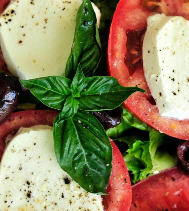 Салат — отличный способ добавить яркого аромата и красок к вашему столу. Салат Капрезе идеален в качестве рождественской закуски, потому что он от природы красный и зеленый. Традиционно для этого салата используются сливовые или ромские помидоры, но если вы можете найти спелые семейные помидоры, я предлагаю использовать их, так как они имеют более богатый вкус. Покупая моцареллу по этому рецепту, обратите внимание на моцареллу ди буфала, которую готовят из молока домашнего водяного буйвола.