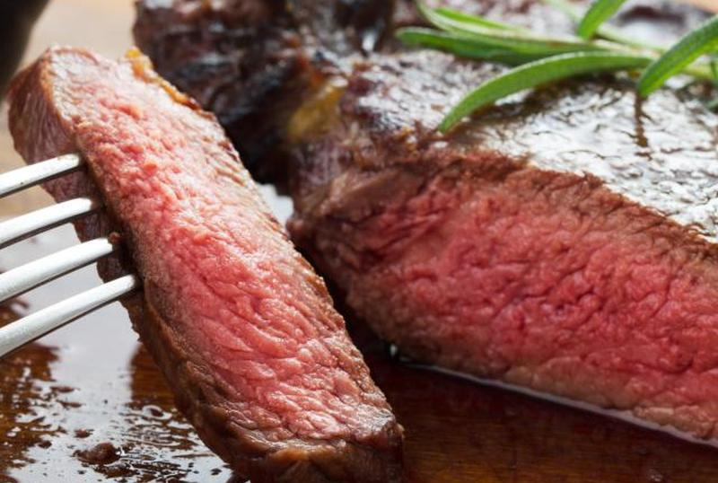 - Обжарьте стейк на горячей сковороде всего по минуте с каждой стороны.