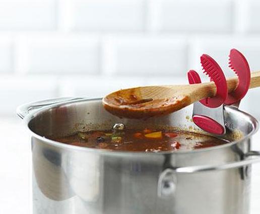 Если вы устали убирать грязную подставку для ложек, когда закончите готовить, этот небольшой зажим для кастрюли не может быть проще в использовании. Прикрепите его к краю кастрюли или сковороды и после перемешивания вставьте ложку в подставку. Жидкости стекают обратно в кастрюлю, и практически отсутствует риск перекрестного загрязнения, возникающего из-за того, что ложки лежат на других поверхностях между перемешиванием.