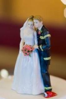 Идеи свадьбы пожарного обычно включают в себя свадебный торт. Многие свадебные топперы пожарных изображают жениха в униформе с невестой в ее платье. Пара часто позирует так: