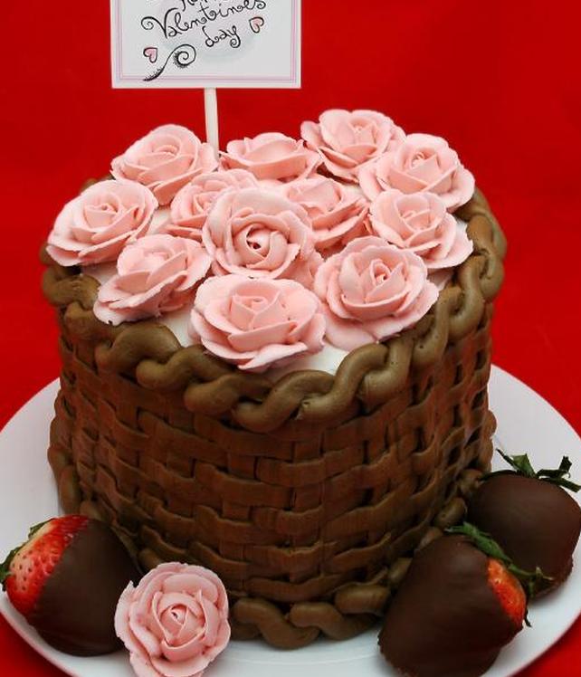 Плетеные корзины часто предназначены для весны, но используйте шоколадную глазурь, чтобы создать корзину в форме сердца, которая идеально подходит для Дня святого Валентина. Добавьте сливочный крем или королевскую глазурь из роз, чтобы получился букет из торта.