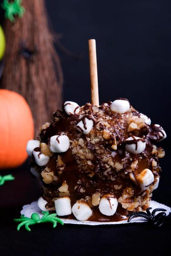Яблоки — это осенний фрукт, а карамельные яблоки — один из старейших традиционных рецептов Хэллоуина, который вы можете найти. Базовый рецепт карамельных яблок настолько прост, насколько это возможно, и оставляет много места для творческих идей. Как только вы покроете яблоки карамелью, вы можете обвалять их в измельченном арахисе или фисташках, если вам нужен оттенок зеленого.