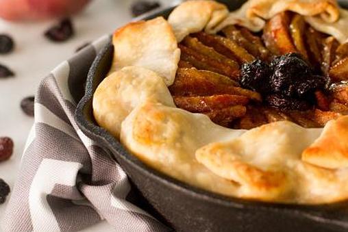 Этот домашний пирог с открытым лицом (на фото выше) выпекается в духовке и является исключением из правила начинать с горячей сковороды. Корочка из масляного теста помещается в холодную чугунную сковороду. Вы можете приготовить тесто в кухонном комбайне или вручную. Сушеную клюкву можно заменить сушеной вишней, что делает этот рецепт претендентом на десерт осенних и зимних праздников. Вам понадобится 10-дюймовая чугунная сковорода. Если ваша сковорода меньше, уменьшите количество груш, сушеной вишни или клюквы.