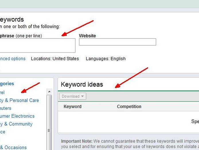 Инструмент находится в Google Adwords, а главная страница состоит из трех областей: полей поиска, где вы можете искать по фразам или веб-сайту, боковой панели категорий и списка результатов ключевых слов в центральной панели.