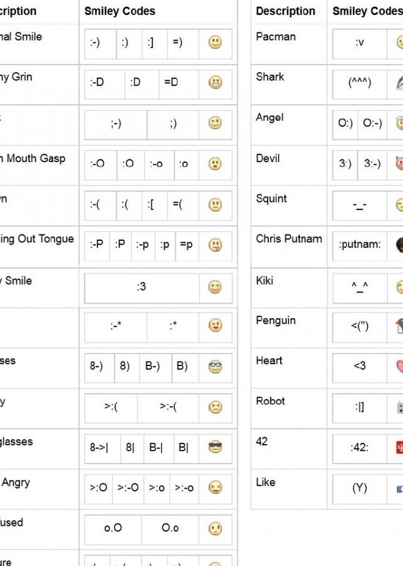 Список кодов смайликов для Facebook