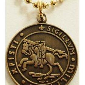 - Подвеска с печатью рыцарей-тамплиеров: традиционная печать изображает двух рыцарей, едущих на одной лошади спереди. На оборотной стороне печати изображен купол храма Гроба Господня и написано: «Где двое или более из вас собраны во имя Мое, там Я посреди них». Эта печать является самым популярным историческим символом для подвесок.
