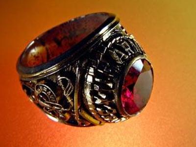 - Кольцо из драгоценного металла, украшенное армейским подразделением, филиалом и гербом, например, кольцо из 14-каратного золота с гербом солдатского армейского подразделения на одной стороне и информацией о подразделении на второй стороне.