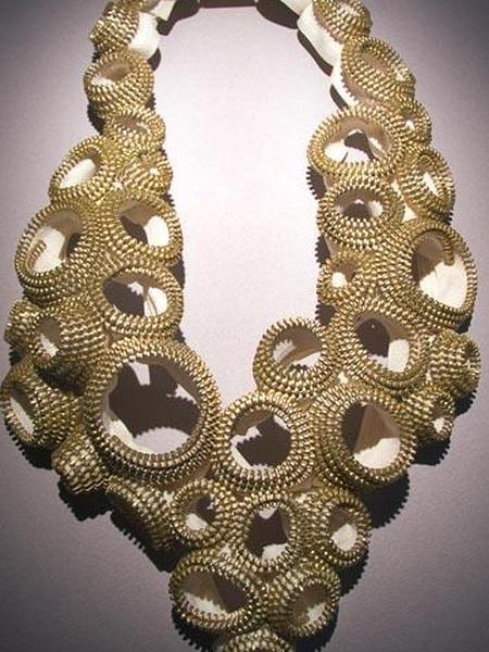 В Йельском университете все было, как ни странно, совсем наоборот. Большое значение придавалось исторической точности в дизайне костюмов. Я больше знаю об исторических отсылках к своему дизайну украшений благодаря учебе в Йельском университете. Я думаю, что все эти опыты — дизайн костюмов, витрины, скульптурные и носимые исследования — достигают кульминации в Zipper Jewelry. Все они связаны с телом и сочетают в себе те театральные влияния и любовь к трансформации необычных материалов.
