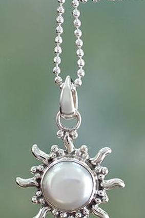 Quiet Sun. Это простое и классическое колье с изображением солнца из стерлингового серебра и культивированным жемчугом подойдет к любому элементу вашего гардероба. Подвесная часть имеет размеры чуть меньше дюйма и снабжена 15,75-дюймовой серебряной цепочкой. Он изготовлен вручную в Индии и продается по цене около 50 долларов.
