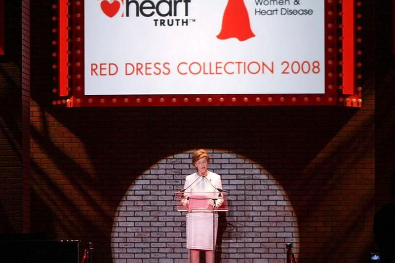 Красная булавка на платье представляет собой национальную кампанию по повышению осведомленности женщин о сердечных заболеваниях. Палец был впервые представлен в качестве символа кампании Национального сердца, легких и крови институт (NHLBI) в 2002 году символ в настоящее время используется как часть НИСЛК в сердце Истины и Американской кардиологической ассоциации Go Red для женщин болезни сердца осведомленности кампании.
