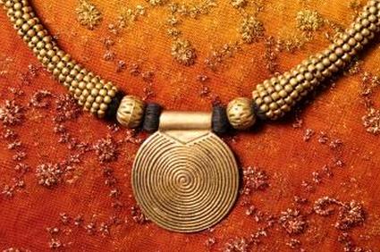 - Цельнометаллическая медная подвеска с спиральным узором на бисерном колье