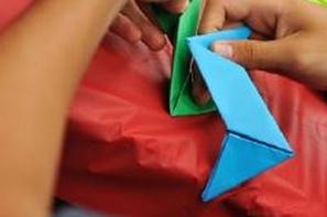- Чтобы сузить лезвие меча, просто повторите процесс создания рукояти. Для этого нарисуйте два маленьких кармашка по бокам небольшой складки по направлению к центру. Вам нужно будет уменьшить ширину лезвия меча вниз, вплоть до кончика. Это завершает меч оригами.