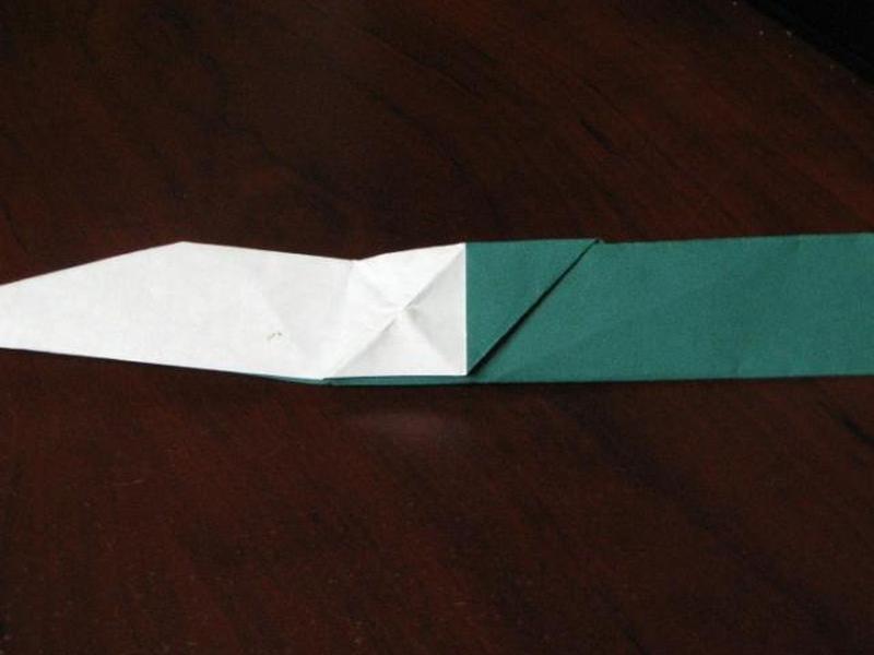 Возьмите самую конечную точку и согните ее на полдюйма вниз. Создайте новую точку, согнув две стороны вдоль только что созданной точки. Затем сложите весь нож пополам.