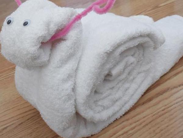 Улитка оригами из полотенец — одно из самых простых в изготовлении животных из полотенец. Это креативный способ встретить гостей у себя дома или подарить кому-то полотенца на новоселье.