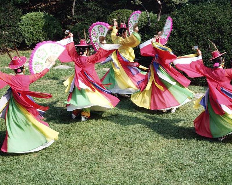 Корейский танец с веером — одно из самых популярных и известных танцевальных произведений в Азии . Ярко-розовые веера и платья в сочетании с изящными движениями вызвали восторг у публики во всем мире.